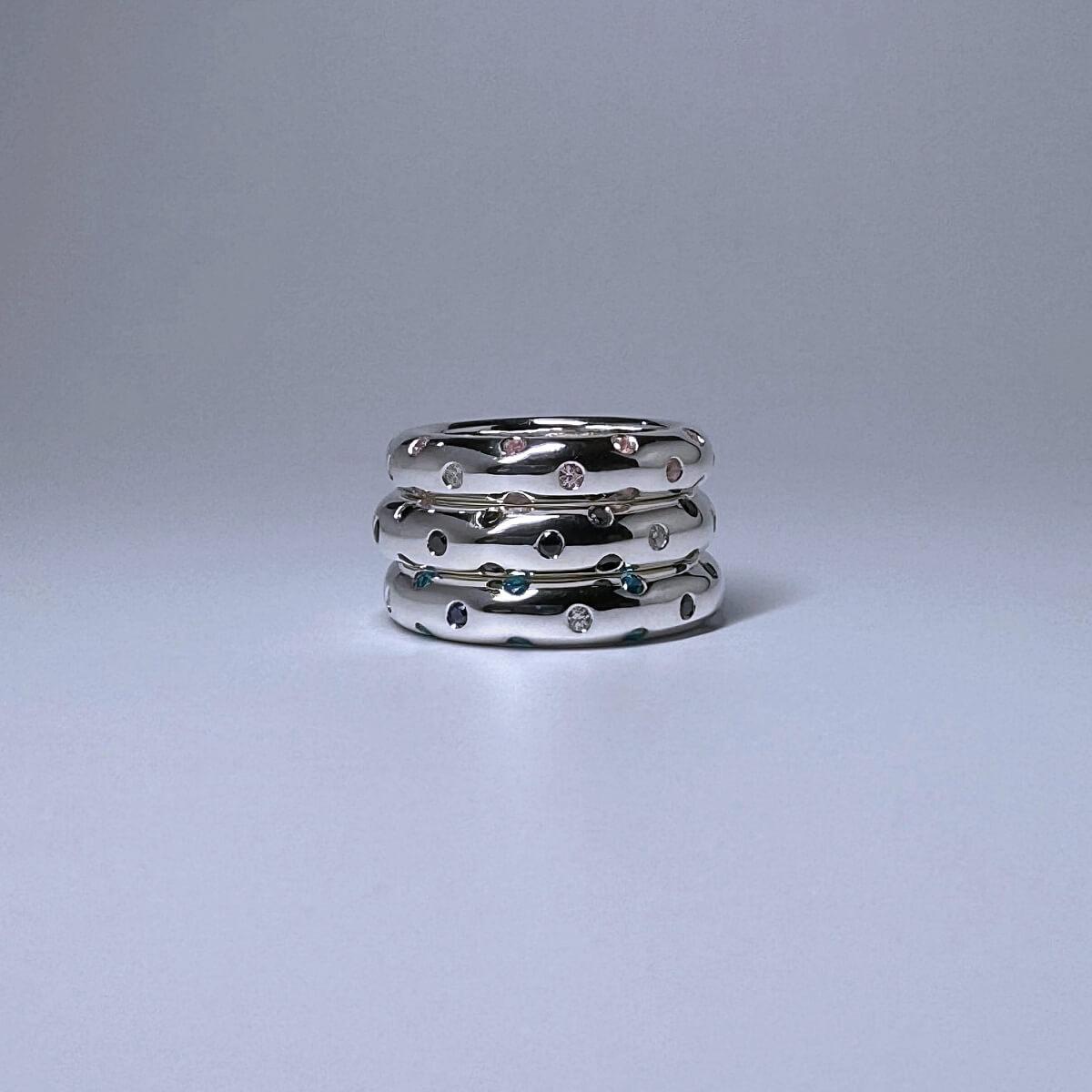 銀の高騰が止まらないため、もうすぐ値上げします。 10カラーの水玉リング(太) 10カラーの水玉リング シルバーをたっぷりと使用しているため、それぞれ、+10,000円ほどになります。 |