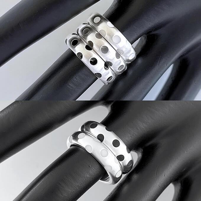 久しぶりに復活しました。 このページだけの割引価格です。 【2セットのみ】水玉リング2点セット (つや消しリングにつやあり水玉、3&5mm幅のセット) |