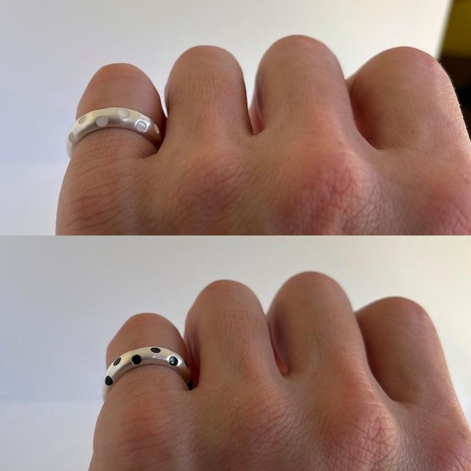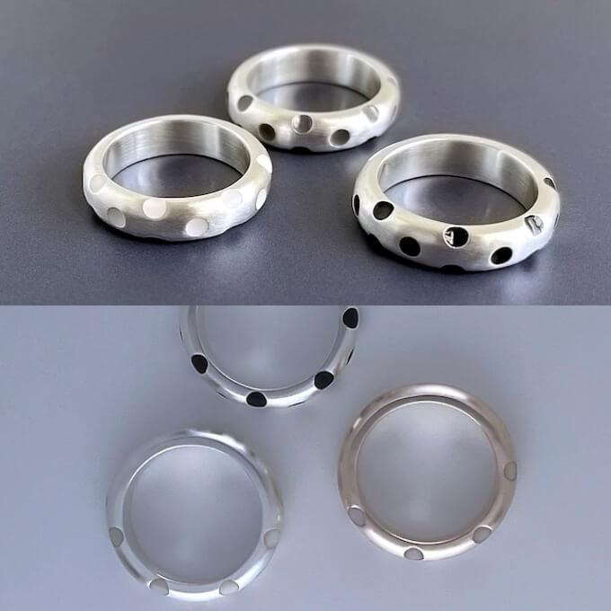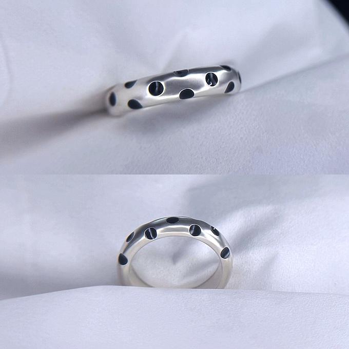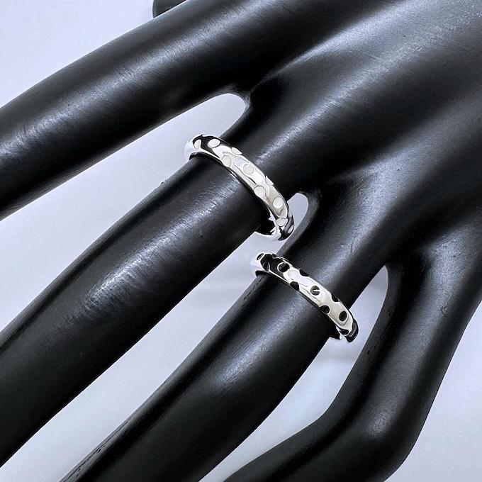 マットなシルバーリングに統一感あるマットな水玉が、クールでシャープでかっこいいです。